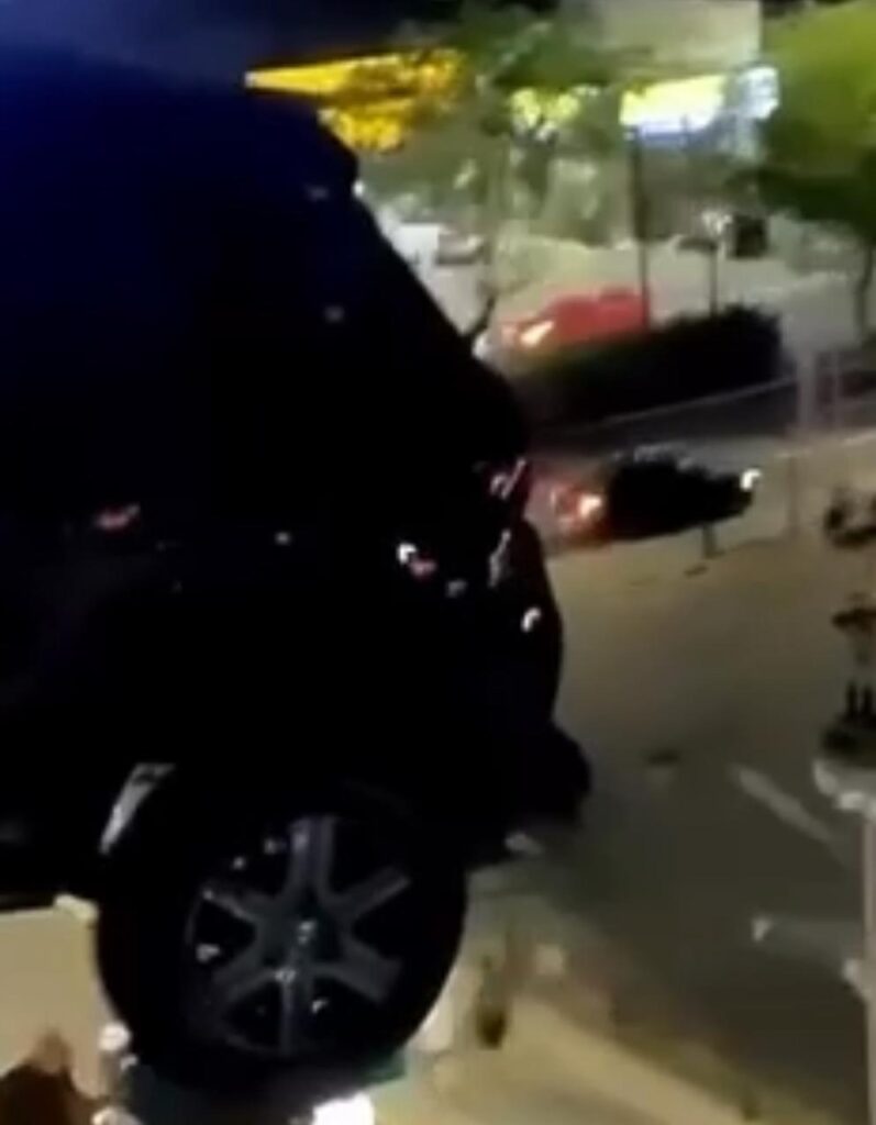 Um susto marcou a noite desta sexta-feira (9) para frequentadores e moradores da Avenida Beira-Mar. Um veículo de passeio ficou parcialmente suspenso, com risco iminente de queda, no limite do quarto pavimento de um estacionamento privado localizado na Rua Osvaldo Cruz, no bairro Meireles.