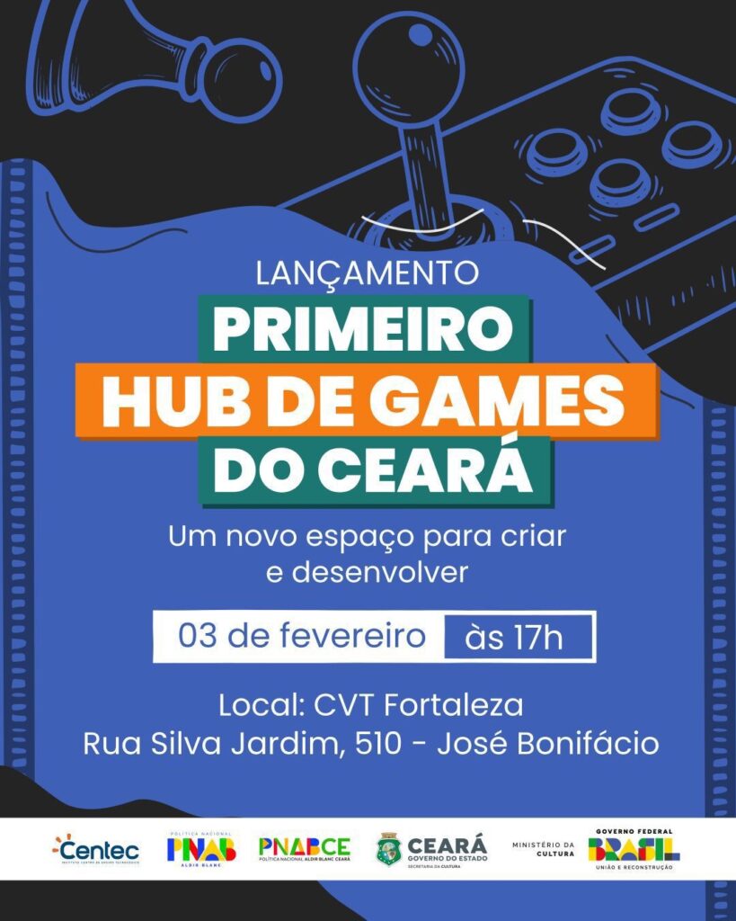 O cenário tecnológico e cultural do Ceará ganha um reforço estratégico nesta terça-feira, 3 de fevereiro. O Instituto Centec, em parceria com a Secretaria da Cultura (Secult), inaugura o Primeiro Hub de Games do Nordeste. O evento de lançamento acontece às 17h, no CVT Fortaleza, localizado no bairro José Bonifácio.