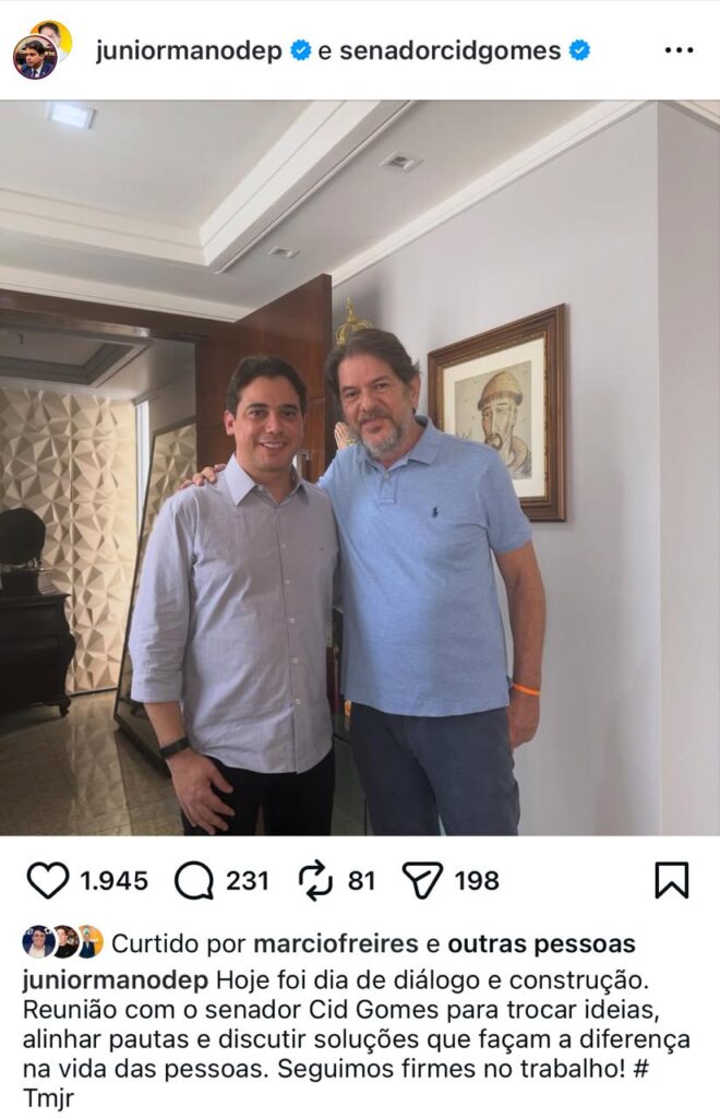 “O alinhamento é total. Júnior Mano representa a continuidade de um trabalho técnico e de articulação que acreditamos ser essencial para o Ceará em Brasília”, pontuou uma fonte ligada ao gabinete do senador.