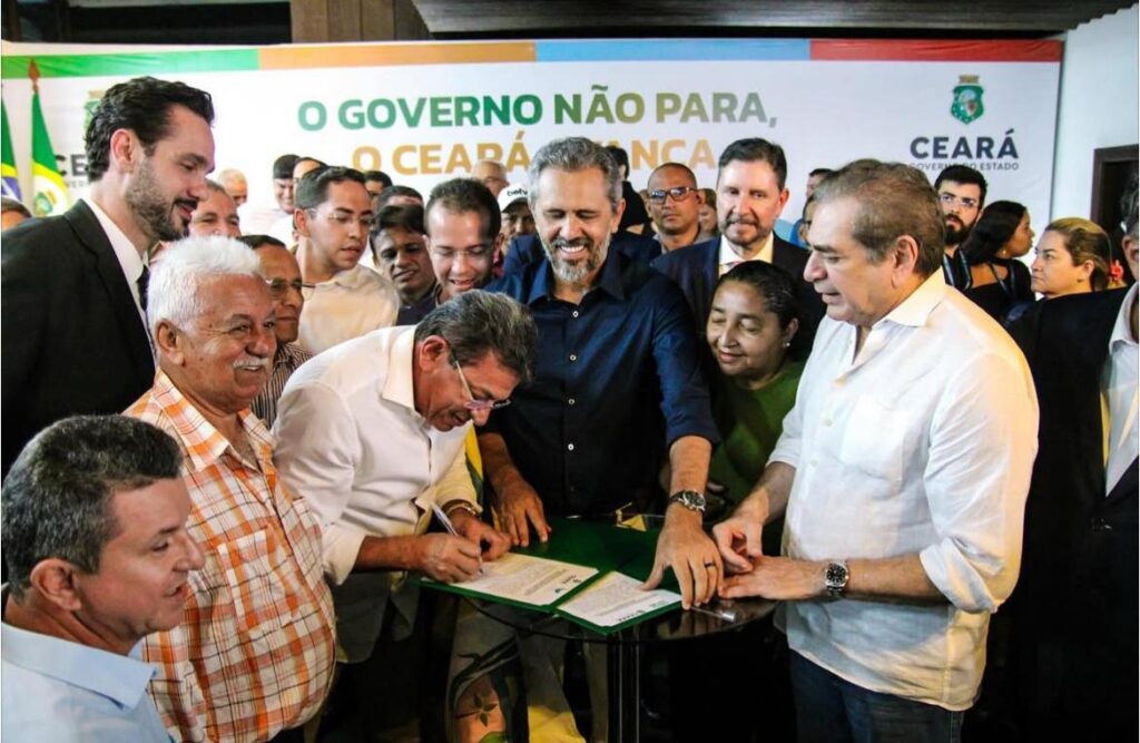 Entre os municípios atendidos, está Pindoretama, Região Metropolitana de Fortaleza. O prefeito Dedé Soldado (PSB), ao lado do diretor do (SAAE), Aquila Gondim, e assessores, assinou no Palácio da Abolição o termo de adesão.