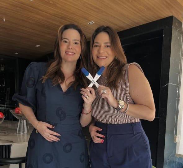 “Vai crescer em dose dupla. Novamente, eu e a minha irmã engravidamos juntas. Que Deus nos abençoe com saúde os nossos bebês que irão chegar.